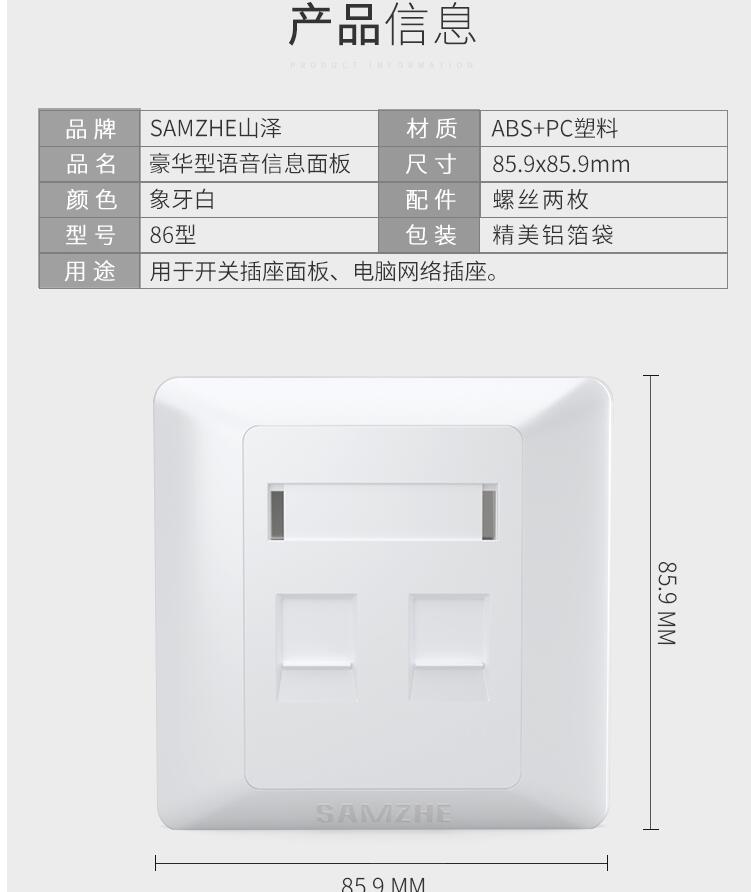 山泽(SAMZHE)WAN-14 电脑插座网口网络面板 加厚86型面板 四口