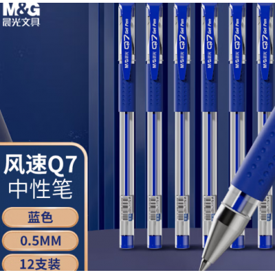 首页 > 办公用品 > 文具 > 晨光(M&G)Q7 0.5mm 蓝色 12支/盒 商务办公学生中性笔会议笔