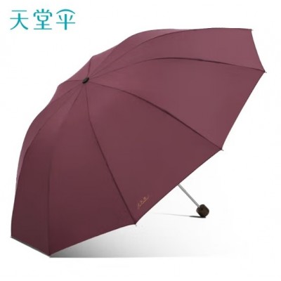 天堂雨伞商务全自动十骨加大天堂雨伞三折晴雨伞- 暗红紫雨伞