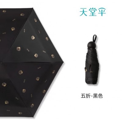 天堂雨伞胶囊伞迷你五折口袋伞防晒防紫外线遮阳伞晴雨伞两用男女海之贝-黑色雨伞