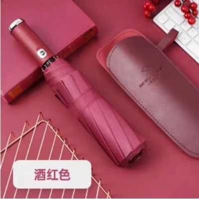 红叶全自动雨伞折叠反向晴雨两用手电筒雨伞太阳伞防晒印广告LG遮阳伞-可旋转双龙手电筒酒红