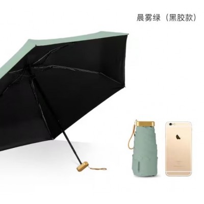 红叶雨伞五折黑胶便携雨伞超轻扁平口袋包包手机伞广告防紫外线两用晴雨伞-晨雾绿