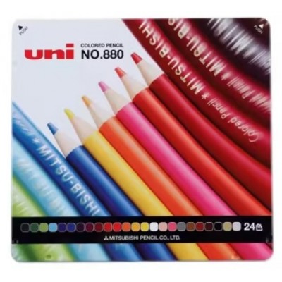 三菱880油性彩铅铁盒素描初学者手绘填色绘画美术画画套装(24色)