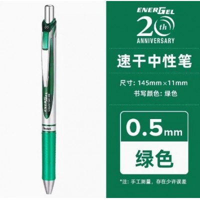 日本pentel派通中性笔透明杆彩色芯按动BLN75TL0.5单支装(5支/盒)绿75Z-D