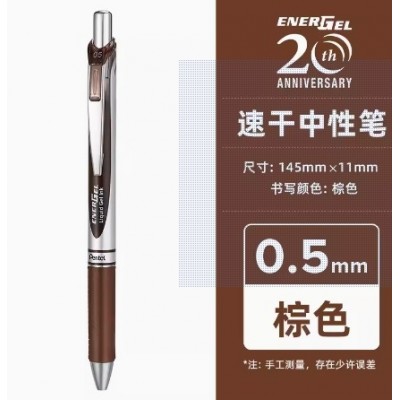 日本pentel派通中性笔透明杆彩色芯按动BLN75TL0.5单支装(5支/盒)棕75Z-E