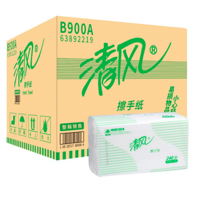 清风 擦手纸单层双折 B900A 2折单层240抽/包*20包/箱 225mm*215mm
