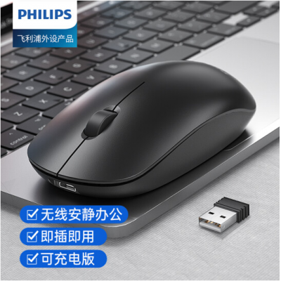 飞利浦(PHILIPS) SPK7315 无线鼠标 办公鼠标 人体工程学 笔记本电脑鼠标 黑色 充电版