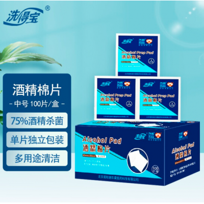 首页 > 办公用品 > 卫生用纸制品 > 洗得宝75%酒精棉片83*45mm 一次性独立包装50片/盒