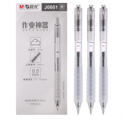 首页 > 办公用品 > > 晨光中性笔 黑色0.5mm中性笔 按动子弹头签字笔 云硅胶软握办公水笔 12支/盒AGPJ0601