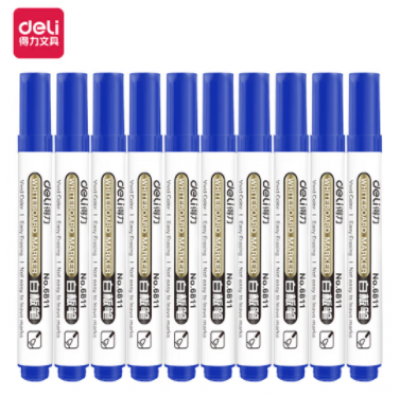 首页 > 办公用品 > > 得力白板可擦笔6811 蓝色 白板笔可擦易擦 白板专用笔 办公会议教学用品10支/盒