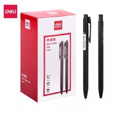 得力s310圆珠笔学生办公中油笔色笔芯油笔0.7mm按动40支装 黑色 40支/盒