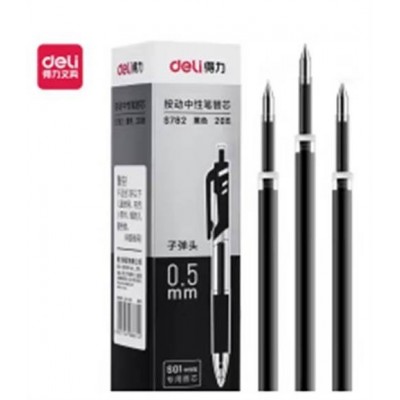 得力S782按动中性笔替芯0.5mm子弹头中性笔水笔签字笔替芯 办公用品 (黑)