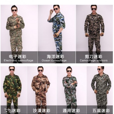 首页 > 装具 > 普通服装 > 迷彩服套装男女大学生军训服夏令营劳保长袖工地工作服学生训练服-混色(160-190码)可选