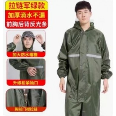 首页 > 建筑建材 > 其他防护用品 > 工厂男士连体雨衣 户外成人雨衣反光条加厚长款雨衣拉链军绿尺码可选