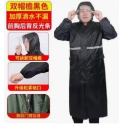 首页 > 建筑建材 > 其他防护用品 > 工厂男士连体雨衣 户外成人雨衣反光条加厚长款雨衣 长款雨衣加兜双帽檐款黑色尺码可选