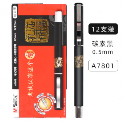 晨光(M&G)孔庙祈福系列0.5mm碳素黑低重心子弹头中性笔粗杆签字笔水笔 12支/盒AGPA7801