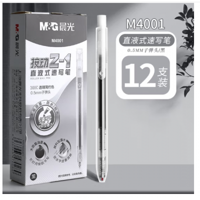 晨光按动直液式走珠笔中性笔学生用大容量碳素水笔黑色速干考试专用0.5子弹头签字笔M2501直液笔 Z-1直液式速写笔ARPM4001单支装(12支/盒)