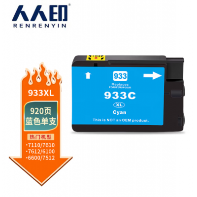 人人印 适用惠普HP932XL墨盒933XL蓝色大容量7110/7510/7512/7610/7612/6110/6600/6700打印机墨盒