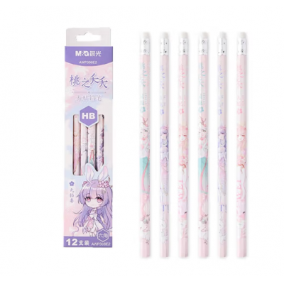 晨光铅笔 木杆铅笔 桃之夭夭六角铅笔 2B铅笔 橡皮头铅笔 AWP308E3铅笔 HB铅笔AWP308E3一盒12支铅笔 单支装铅笔