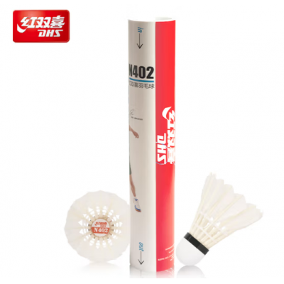 红双喜(DHS)羽毛球稳定耐打训练级羽球鹅毛材质(12只装)N402