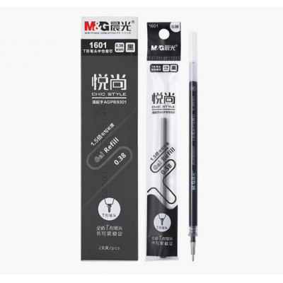 晨光笔芯替芯 中性笔笔芯替芯 悦尚笔芯替芯 T形笔头笔芯替芯 黑色笔芯替芯 单支装1601 0.38mm(黑)