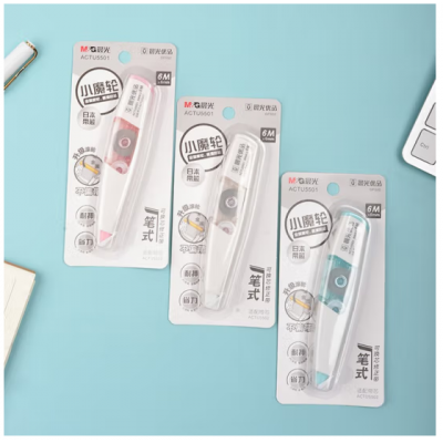 首页 > 办公用品 > 文具 > 晨光 优品小魔轮6米笔式修正带日本带芯金属滚轮耐摔可替换PET带芯中小学生涂改错误使用修正带 笔式修正带ACTU5501/6m宽6mm颜色随机1卡