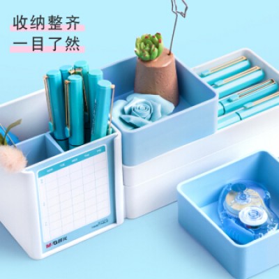晨光(M&G)ABT98477 多功能组合笔筒 办公用桌面收纳盒创意摆件个性简约大容量收纳筒 多功能组合笔筒 蓝色