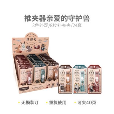 晨光(M&G)文具推夹器办公便携无孔订装器 学生试卷无痕订书机 晨光亲爱守护兽ABS916DJ随机1卡