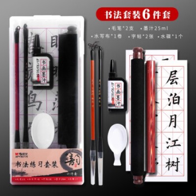 晨光书法练习毛笔套装初学者儿童小学生文房四宝笔墨纸砚成人套装狼毫毛笔字书法用品砚台兼毫练字软笔中楷笔 6件套(APY90779)