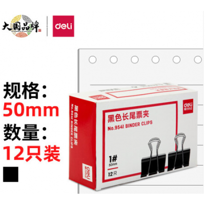 首页 > 办公用品 > 文具 > 得力(deli)50mm超大号金属黑色长尾夹/票据夹/燕尾夹/票据文件夹子 12只/盒 办公用品 9541