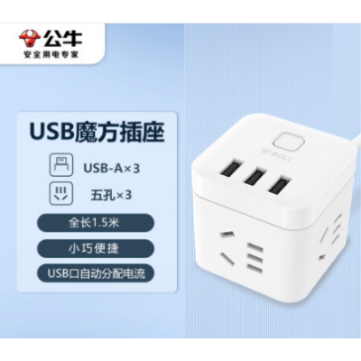 公牛(BULL) 魔方智能USB插座 插线板/插排/排插/接线板/拖线板 GN-U303U 白色魔方USB插座全长1.5米