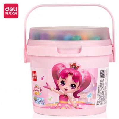 得力70740-36色桶装音乐公主短圆杆水彩笔 儿童可水洗画笔