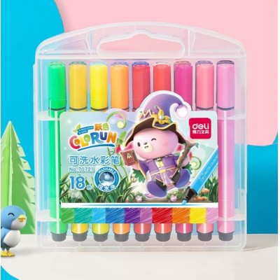 得力(deli)18色画笔套装文具美术用品开学季考试礼物可水洗水彩笔易握粗三角学生儿童涂色颜色马克笔70721