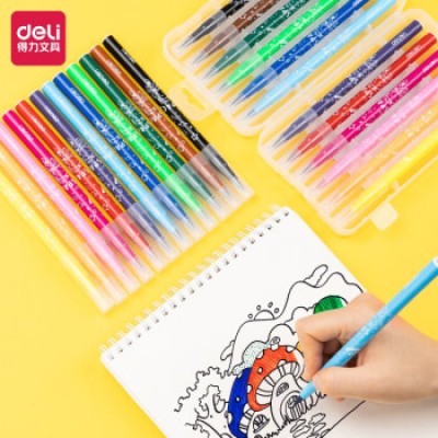 得力(deli)软头可水洗涂鸦笔彩色画画幼儿园儿童彩笔 软头水彩笔套装 (12色)软笔头水彩笔HM555-12