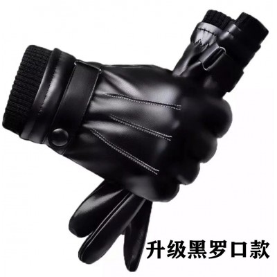 手套男皮保暖加绒加厚手套秋冬户外骑行摩托车自行车保暖手套PU罗口黑
