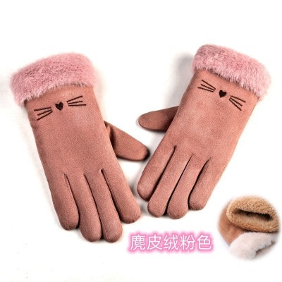 首页 > 建筑建材 > 手部防护 > 女保暖防寒触屏加绒加厚骑行骑车自行车秋冬季麂皮绒手套防风手套JP绣猫混色