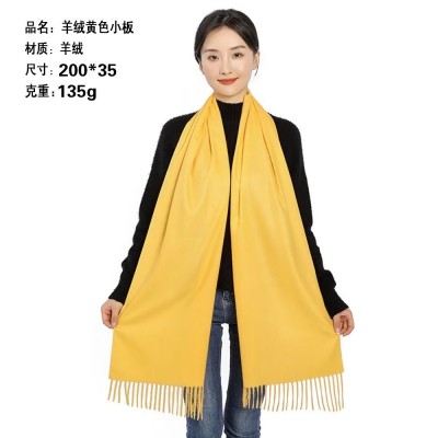 中国红围巾红色礼品年会红围巾仿羊绒刺绣羊绒小版 黄色 175cm以上