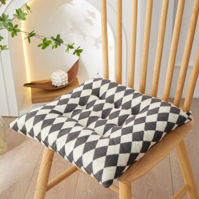 学生座椅垫子居家靠背椅餐厅椅可绑带屁股垫条纹菱形毛绒几何坐垫Z18坐垫菱形混色 40*40*7cm