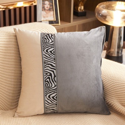 现代简约沙发毛绒抱枕套床头软包靠垫座椅双拼斑马纹家居新款拼接斑马纹抱枕混色45*45cm仅枕套