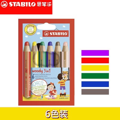 德国STABILO无敌乐可水洗多用途彩色画笔6色蜡笔思笔乐8806