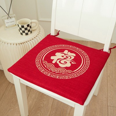 中式麻布四季通用防滑卡通海绵座垫久坐屁垫绣花坐垫福字餐椅垫-福字混色45*45*3cm