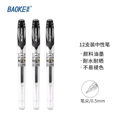 宝克(BAOKE) 学生写字笔文具 0.5mm子弹头 中性笔 0.5mm速干黑色办公水笔 顺滑商务签字笔 12支装 PC1258