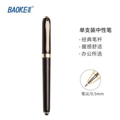 宝克(BAOKE) 学生硬笔书法练字笔 文具 0.5黑色办公水笔 金属笔夹磨砂杆大容量商务签字笔水笔缀金色 1支 PC2278