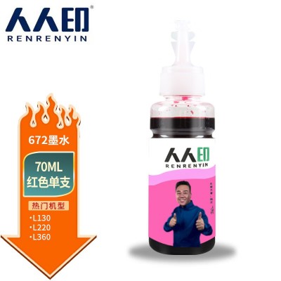 首页 > 办公用品 > 墨水 > 人人印 672墨水70ml红色 适用爱普生EPSON L360 L310 L380 L351 L130 L313 L301 L1300 L383打印机