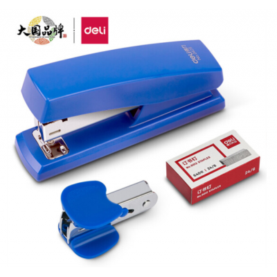 得力(deli) 0354 12#办公订书机3件套(订书器+订书钉+起钉器) 蓝色