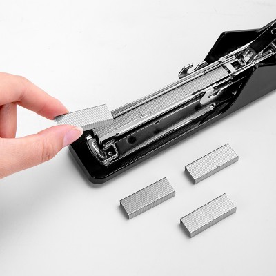 首页 > 办公用品 > 文具 > 得力(deli)省力结构专利订书机/订书器 适配12#订书钉 可装150枚钉 办公用品 黑色0468