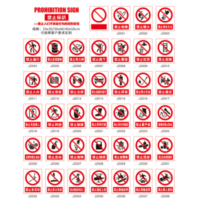 首页 > 建筑建材 > 其他防护用品 > PVC警示牌/标识牌/禁止标识 20*30cm 1mm铝板+反光(下单备注详情页对应内容编号)5张装