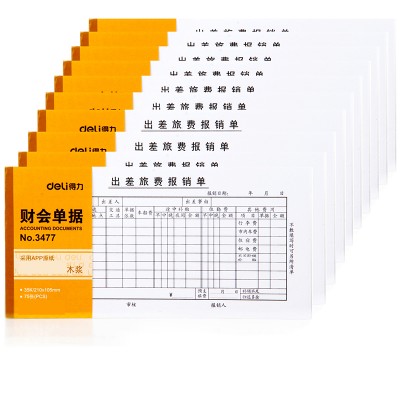 首页 > 办公用品 > 文具 > 得力(deli)3477财会单据凭证票据单据 10本/盒 差旅费报销单办公用品