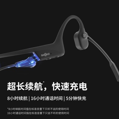 韶音(SHOKZ) OpenComm骨传导蓝牙专业通讯耳机 商务话务办公教育学习培训网课耳麦 黑色