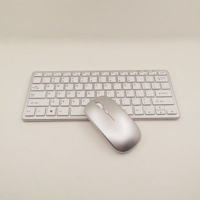 九千谷 无线蓝牙键盘鼠标套装可充电办公娱乐键鼠套装笔记本电脑手机IPAD通用2.4G+蓝牙5.0+3.0 银色